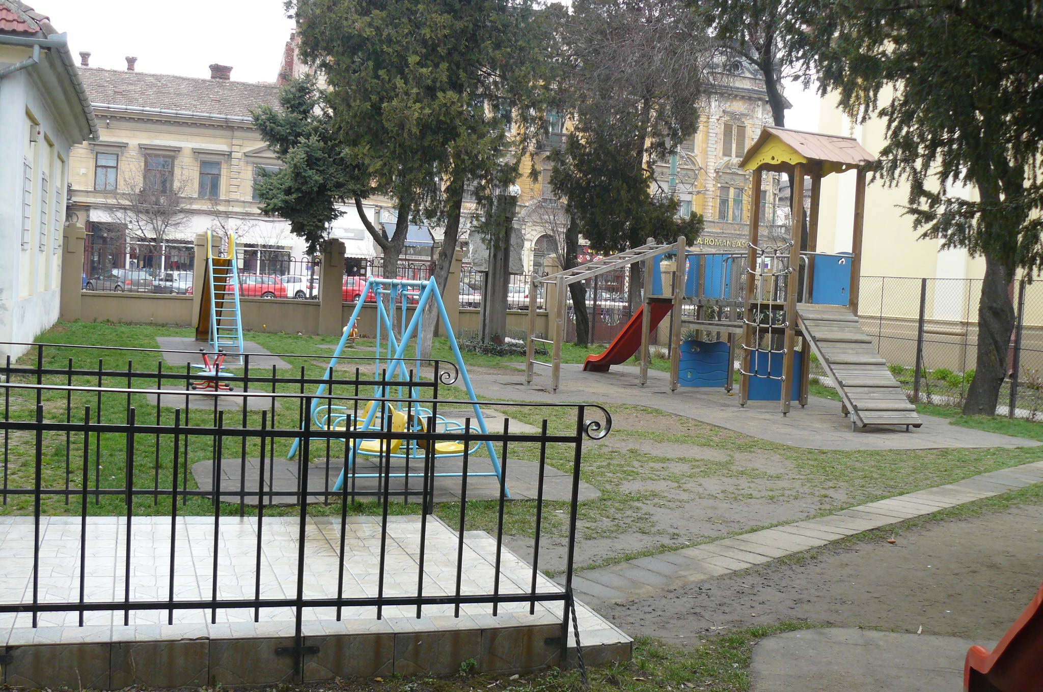 - zárt, füvesített udvar sok játékkal