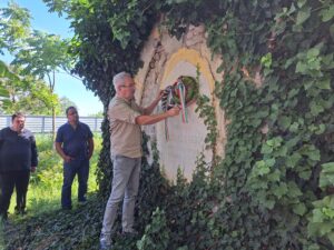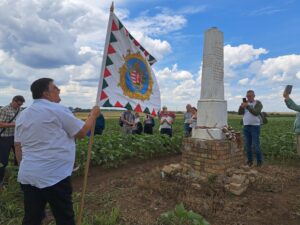 Újbesenyőn, a Temesvári csata emlékhelyén csatlakozott az emlékezőkhöz Erdei Lajos, a temesvári Losonczy István Hagyományőrző Egyesület elnöke, aki aztán a kirándulás végéig a csoporttal tartott. Civil szervezetük jelentős szerepet vállal abban, hogy a Temesközben található magyar vonatkozású történelmi emlékhelyeket gondozzák. Így van ez a csata helyszínét jelölő emlékoszloppal is, amelyet annak ellenére igyekeznek rendben tartani, hogy magánterületen, egy termőföld közepén áll, ezért a tulajdonossal is folyamatosan egyeztetniük kell.