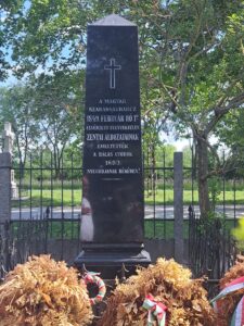 Magyarországra a törökbecsei Leiningen-Westerburg Károly szobor megkoszorúzása, majd az 1849-es zentai vérengzés magyar áldozatainak síremléke előtti tisztelgés után indultak vissza.  Ez utóbbi 1849. február elseje után történt, amikor hiába szólították fel a magyarokat Zenta megadására a szerbiai önkéntesekből és helyi szerbekből álló csapatok. Zenta eleste után a győztesek raboltak, pusztítottak és gyilkoltak a városban, a Szentháromság emlékmű köré gyűjtve az áldozatok levágott fejeit. A  mészárlás  Zentán  két  hétig  tartott,  a  kivégzettek  számát a történészek 2000-2800 fő  közé teszik.