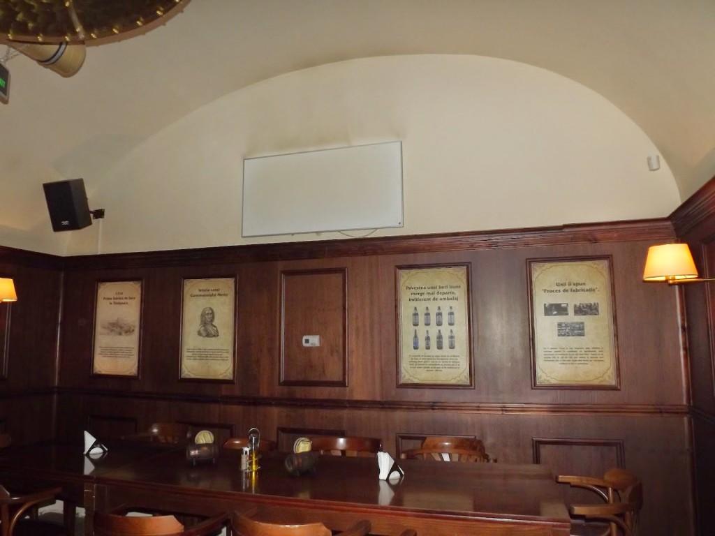 Ritka hangulatos kocsma-vendéglő, mind a kerthelysége, mely egy patinás régi épület belső udvarában helyezkedik el, mind pedig a nyerstéglás pácolt fás beltér, ahol jól megválogatták a dekorációt is, zömmel a sörfőzéshez kapcsolódó antik fotók láthatóak a falakon, régi címkék és söröspalackok, persze csak a román korszakból. Azt tegyük azért hozzá, hogy a sör aktuális címkéjén látható három érem, amit még az Osztrák-Magyar Monarchia idején nyert a sör, ezeken kiolvasható, hogy „Ferencz József Ausztria császára és Magyarország.” … királya… ez lemaradt, de vélhetően nem eszmei okból, hanem hanyagságból. S olvasható az érmeken Temesvár magyar neve is.