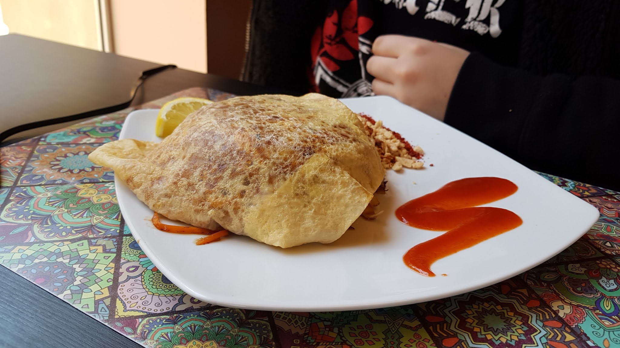 Egy másik alkalommal a Pad Thai Tomra esett a választásunk, ami tojásos, rákos, póréhagymás, tamarind-szószós, fokhagymás rizstésztát takart, amit ropogós pirított hagymával szórtak meg.