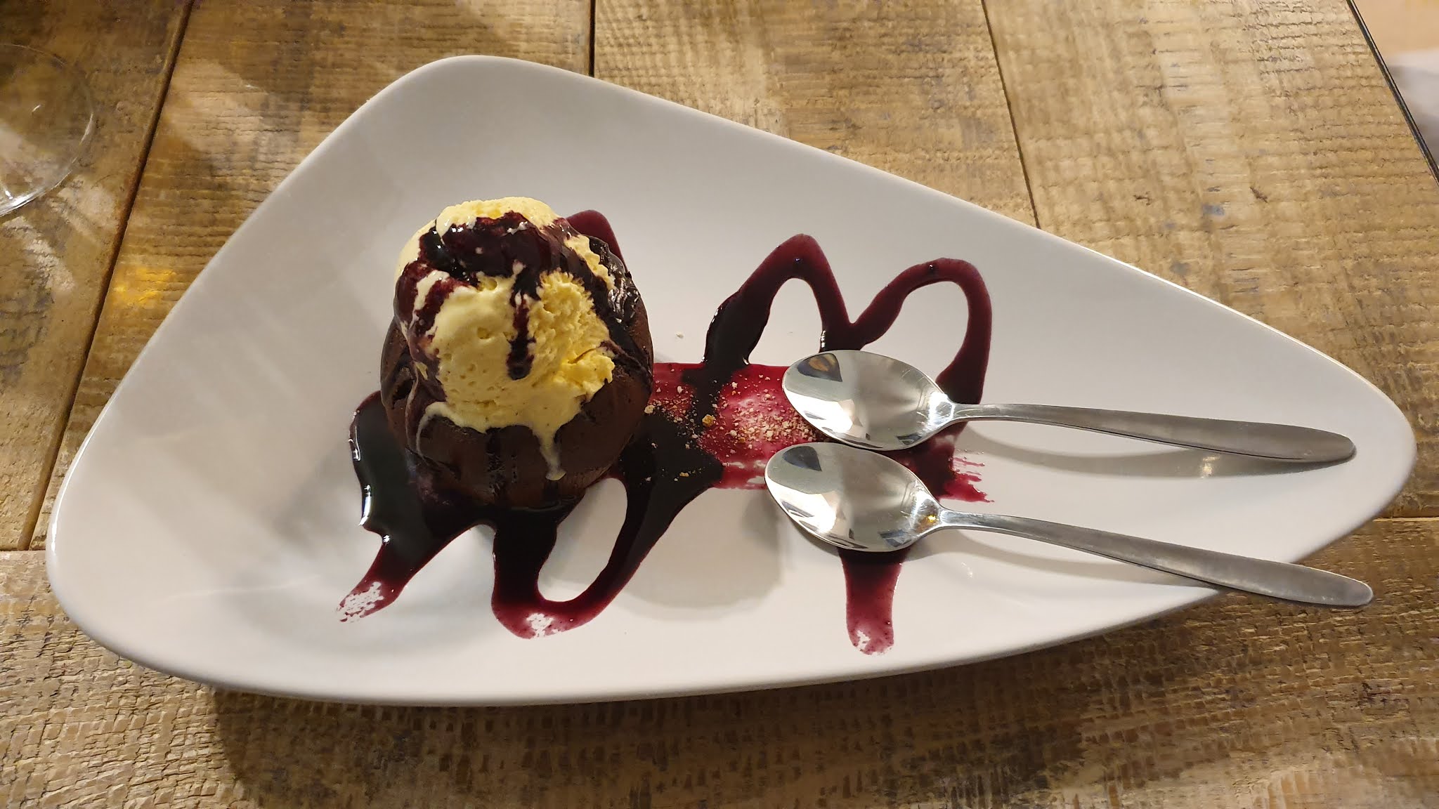 A kiszolgálás kedves, udvarias, de elképesztően amatőr. Rendeltünk egy sajttortát csomagolva, pincérünk elmagyarázza, hogy nem tett rá fagylaltot, nehogy elolvadjon. Jelezzük, hogy nem is jár hozzá fagylalt, ekkor derül ki, hogy a csomag nem sajttortát rejt, hanem csokilávát. Mondjuk is, neki, hogy mi mást kértünk, első menetben azt állítja, hogy sajttorta a neve a „lava cake”-nek. A pincérek szokták gyűjteni a vendégek vicces gasztronómiai baklövéseit, azt hiszem, egy fordított lista élére kívánkozik az a sületlenség, hogy a csokilávának „sajttorta” a neve. Mikor mutatom neki a saját étlapján, hogy két desszertről van szó, amit más-más áron kínálnak, akkor azt mondja, hogy ez a régi étlap, mintha lenne ennek bármiféle relevanciája. Végül helyben ettük meg az újratálalt csokilávát.