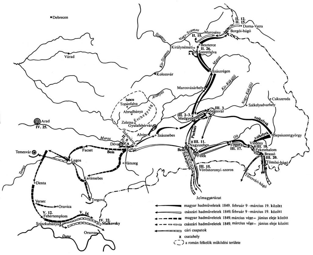 A 70000-es létszámú orosz sereggel szemben július 31-én Segesvárnál csatát veszít, majd augusztus 6-án a nagycsűri csatában marad alul.