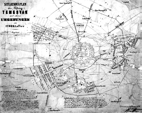 A temesvári császárhű erőd ostromának vezetését Vécsey Károly tábornok vette át, aki előbb Csernegyházán, majd a Vadászerdőben, az aradi és lippai utak között fölállított sátortáborban rendezte be főhadiszállását. 1849 júniusának végéig, Arad elfoglalásáig, Temesvár mintegy 7000 emberből – 6 gyalog (2 Sivkovich-, 2 Rukavina-, 1 Leiningen-, 1 oláh határőr ezredbeli) zászlóaljból, s 6 század Schwarzenberg-ezredbeli dzsidásból – álló várőrségének létszáma meghaladta az ostromlókét. Az ostromsereg ugyanis 1849. június 2-án mindössze 4672 emberből és 34 lövegből állott. Kevés, elégtelen hadi eszköz állt rendelkezésre a „kor hadászati elveinek megfelelő, szabályos ostrom” megindításához a csillagalaprajzú, kilenc nagy bástyával ellátott hatalmas erősség ellen. A Vauban-típusú vár nem tartozott már a legkorszerűbb katonai létesítmények sorába, de háromsoros sánc- és falrendszere biztonságos védelmet nyújtott a várvédő alakulatoknak és a civil lakosságnak, akik többé-kevésbé felkészülten várták a támadást. Megszállva a külvárosokat, Vécseynek sikerült ostromzár alá vennie az erődítményt, és sorra visszaverte a szívós ellenállást kifejtő várvédők kitöréseit, támadási kísérleteit. Habár a védőkkel kisebb-nagyobb összetűzések, harcok szinte naponta kialakultak, az ostrom folytatását a császáriak komolyabban egyetlen egyszer sem veszélyeztették.