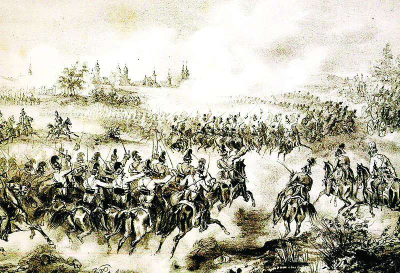 „Az ágyúk dörögtek mindkét részről szakadatlanul, a csatatért nehéz füstfelleg borítá, melyet olykor egy-egy szélfúvat föllebbentve, látni engedé a mind inkább előnyomuló ellenséges hadcsapatokat. A bódító csatazajból fegyverropogás, dobok pörgése, s olykor egy-egy trombitának éles harsogása hangzott ki. Bem által a centrumban összpontosított ágyúütegek tüzelése csakhamar gátot vetének az ellenség előnyomulásának, sőt, a balszárnyon Kmety derék hadosztálya támadólag lépvén föl, visszaszorítá az ellenség néhány csapatait.”