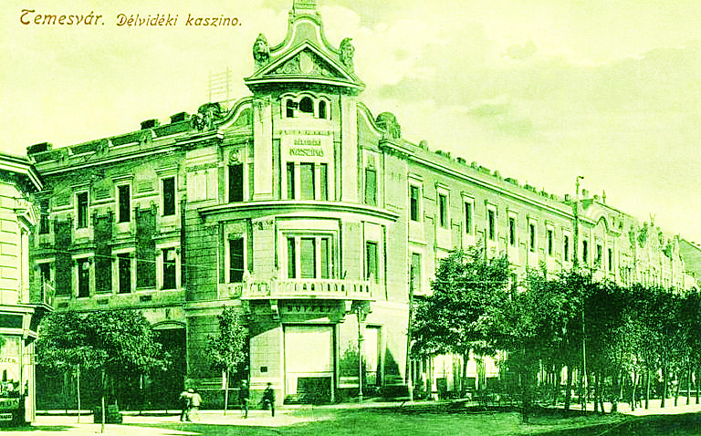A hajdani Hunyadi út (jelenleg: 1989. December 16. sugárút) és az egykori Horváth Boldizsár (ma: Miron Costin) utca sarkán, a felszámolt Baiersdorf-féle fatelep helyén kiparcellázott 5466 négyszögöles kettős házhelyet 1898-ban adta el Temesvár szab. kir. város tanácsa a nem sokkal korábban megalakult Délvidéki Kaszinónak. A tetemes összeggel megszerzett telken Tőry Emil (1863–1928), budapesti műépítész tervei alapján impozáns, kétemeletes épülettömböt emeltetett az agilis, fiatal civil szerveződés, amely 1904 utolsó éjszakáján nagyszabású szilveszteri mulatságot rendezett fényes és tágas otthonában. A belső helyiségek berendezésének, kiképzésének befejeztével az épületegyüttest, – amely vendéglőt, kávéházat, könyvtárat, klubhelyiségeket, társalgókat, játéktermeket stb. foglalt magába – többszöri halasztás után 1905. január 15-én avatták fel ünnepélyesen. A város közéletének színe-java sereglett össze a Délvidéki Kaszinó első teaestjére, hogy megcsodálja a káprázatos hajlékot, hogy élvezze a magyaros vendégszeretetet, hogy kedvére szórakozzon a gazdag és változatos műsoron, amelyet a Temesvári Magyar Dalárda, Barthos Gyula színművész, Csörgő József főgimnáziumi tanár, Jeney Böske, Berkeszi Mici és Serban Stefi biztosított. Dr. Telbisz Imre (1848–1935) királyi közjegyző volt a Délvidéki Kaszinó elnöke, míg az igazgatói feladatkört, Cseresnyés Jenő (1852–1931) folyammérnök, a titkárit meg Pálosy Dénes, felső kereskedelmi iskolai tanár látta el. A „minden ízében modern” kávéházat és büfét a kezdeti időszakban a „legnagyobb gonddal és előzékenységgel” Rémi Zsigmond és neje vezette, akiktől nem sok idő múltán, Saruga Lajos vette át a kávéház és a vendéglő igazgatását, amelyekben Mojsze Milán bandája szolgáltatta estéről estére a háttér-, a tánc-, a mulatós és a szórakoztató zenét. A Délvidéki Kaszinó termeiben találkozott a Béga-parti város előkelő polgársága, a vidékről berándult birtokosok, gazdatisztek, valamint a tájegység központjában szolgáló katonatisztek, jogászok, hivatalnokok, tanárok, színészek és újságírók sokasága. A Délvidéki Kaszinóban ült rendszeresen össze az 1903-ban megalakult Arany János Társaság tagsága. A kiváló orgonista, karnagy és zenetörténész, Braun Dezső (1894–1940) feljegyzéseiből tudjuk, hogy a Délvidéki Kaszinóban találkozott 1906-ban először egymással Pogány Mihály, a Temesvári Hírlap ambiciózus főszerkesztője, majd tulajdonosa és a budapesti Liszt Ferenc Zeneművészeti Főiskolán Koesler János tanítványaként frissen diplomázott Járosy Dezső (1882–1932), a temesvári római katolikus székesegyház újsütetű orgonistája és karnagya. Pogány Mihály felkérte a fiatal, okleveles muzsikust, hogy írjon beszámolót napilapjába a Délvidéki Kaszinóban közönség elé lépett nótaszerző, Fréter Loránd hangversenyéről. Találkozásuk és a megtisztelő felkérés eredményeként kezdte el rendszeres zenekritikusi tevékenységét a Temesvári Hírlap hasábjain Járosy Dezső, amelyet negyed évszázadon át, 1932-ben bekövetkezett haláláig példamutató intenzitással, szakszerűséggel és kitartó következetességgel folytatott.