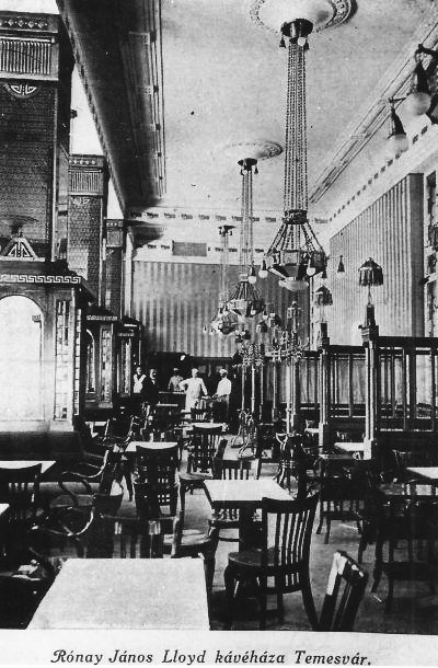 „Temesvár óriási átalakuláson megy keresztül. Hatalmas paloták emelkednek ki a vársáncok egykori bűzös, nádas mocsarából, ahol még pár év előtt a vízimadarak röpködtek, undok varangyok kuruttyoltak, ma új élet, emberi munka dicső ünnepe ül diadalt. Akik két évtized óta nem látták ezt a várost, azok nem találnak többé ezek közt a büszke, égbenyúló díszes falak közt, a régi, kopott, vidéki városra. Eltűnt ma már csaknem minden, ami a régi, jó időkre emlékeztet. És egyik érdekes jelensége a fejlődő Temesvárnak, hogy a kávéházak kezdenek dominálni a vendéglők helyett” – kezdte a Temesvári Hírlap 1912. július 2-i számában Egy új kávéház címen publikált cikkét Pogány Mihály lapjának munkatársa, majd a következőképpen folytatta: „Három nap óta Temesvár csodára jár a Belvárosba és megbámulja az új Lloyd-kávéházat, melynek megnyitása eseményszámba ment, három nap óta erről beszélnek az emberek. Rónai János, az új kávéház tulajdonosa egy darab fővárost varázsolt ebbe az épülő tömkelegbe. Egy kávéház, amely a legmesszebbmenő igényeknek is megfelel, amely ragyog és csillog, kényelmes és praktikus, és felveszi a versenyt a legszebb budapesti kávéházakkal. Pedig ez nagy szó, mert Budapest a kávéházak városa.” A riporter elragadtatással írt a kávéház kiképzéséről, berendezéséről is: „Elegánsan, pazar fénnyel rendezték be ezt a hatalmas kávéházat, amelynek minden darabja a legkisebb kávéscsészékig elismert művészkezek munkája. Művészi tervek alapján ízléses stílusban készült el az új kávéház. A falakon, az asztalokon, a kávéscsészéken, a terasz kovácsozatán, mindenütt az a la grec stílus meander vonalai dominálnak. A falakat lila színű moáré-selyemimitációs tapéták fedik. A falburkolatok kemény, barna tölgyfából készültek, tele nehéz ércdíszítményekkel. Az oszlopokat üvegfestések és hatalmas tükörlapok fedik, s dacára a sok tükörnek, a kávéház belső berendezése nyugodt, előkelő összhatást gyakorol a nézőre. Hatalmas üvegtáblás ablakok és az intim páholyszerű fülkék külön specialitásai a kávéháznak. Nyáron az összes ablakok leereszthetők s ezzel a kávéházban megszűnik a fülledt, forró levegő.”