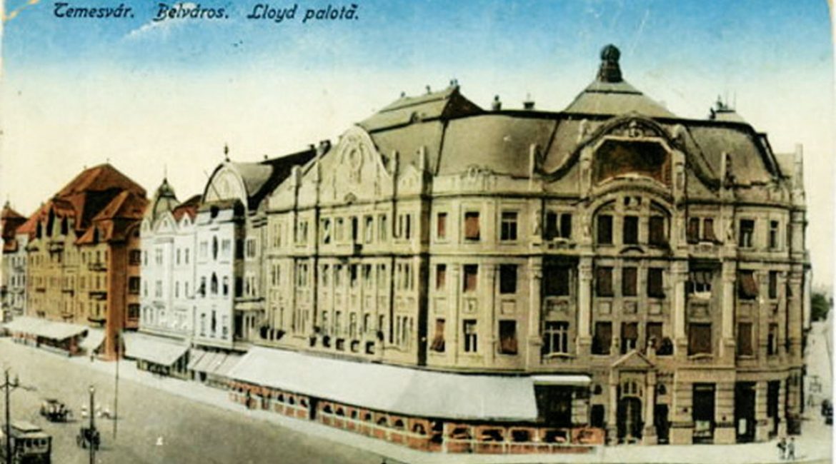 Felépültétől, Temesvár emblematikus épületei közé tartozott az 1910–1912-ben Baumhorn Lipót (1860–1932) tervei alapján az egykori Ferenc József Színház tömbjével szemközt Merbl Arnold (1876–1950) építkezési vállalkozó által emelt Lloyd-palota. A tősgyökeres temesváriak a Béga-parti város 20. század elején kialakított új központi terének, – a valamikori Ferenc József, 1989-től Győzelem térnek – a bal oldalát, amely évtizedeken át korzóként szolgált, konokul Lloyd-sorként említik és tartják számon. A lábát a Bánság szívében 1860-ban megvető társaság miután több ingatlanban is bérlőként tanyázott. Előbbi, Báthori utca 5. szám alatti székháza első emeletén Florian Schenk működtette bérlőként a Lloyd-kávéházat. 1910-ben a felszabadult védelmi övezetben, a színház épületével szemközt Temesvár szabad királyi város polgármesteri hivatalától a Lloyd Társaság 496 négyzetöles telket vásárolt, amelyen impozáns, többszintes saját székházát rövid idő leforgása alatt a helybeli vállalkozók, a kereskedők, a nagytőkések hathatós, áldozatkész anyagi támogatásával felépíttette. Hivatalos felavatására 1912. szeptember 29-én került sor. Az impozáns épület első emeletén kaptak helyet a társaság irodái valamint a Lloyd Klub választékos eleganciával bebútorozott helyiségei – a könyvtár, az olvasóterem, a társalgó, a levelezési iroda valamint a ruhatár.