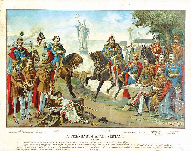 Feischmidt Margit történész megállapítása szerint az 19. század utolsó évtizedeiben „a tradícióalkotás és emlékműállítás általános politikai légkörében a kisebb magyarországi városokban és településeken is jelentkezett ez az igény, közöttük azokban is, amelyekben csak domináns elitje tudott azonosulni az új emlékezetpolitikai iránnyal. Azokban a városokban – amelyek vagy maguk voltak multietnikusak, vagy egy multietnikus régió centrumaként működtek – a nemzeti emlékművek fontos viták, sőt konfliktusok forrásává váltak. Ebben a sorban Arad volt az első, ahol 1890-ben emlékművet állítottak az 1849-es szabadságharc kivégzett vezetőinek a tiszteletére.”