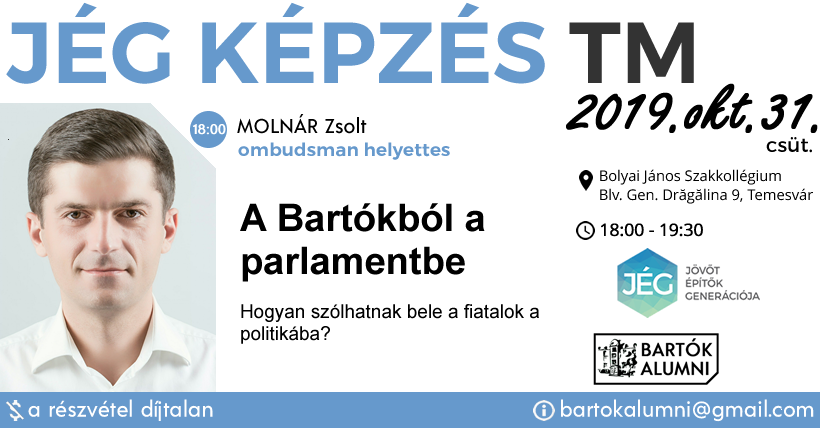 JÉG Képzés: Molnár Zsolt – a Bartókból a parlamentbe csütörtökön 18 órától a Bolyai János Szakkollégiumban