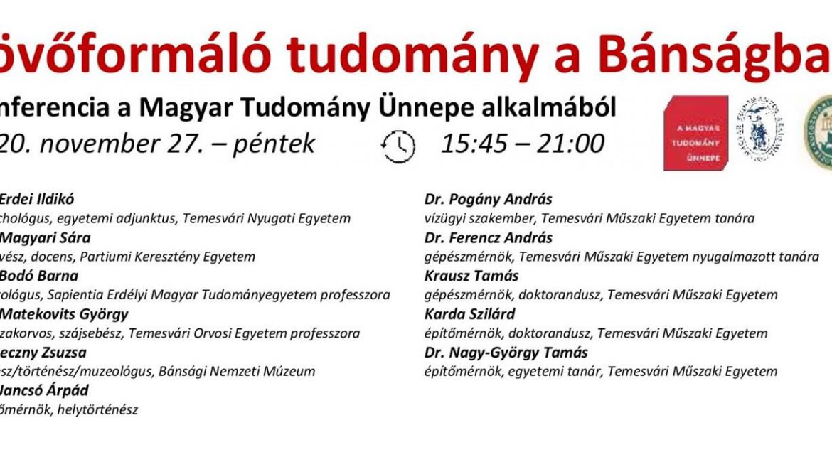 Jövőformáló tudomány a Bánságban – online konferencia a Magyar Tudomány Ünnepe alkalmából péntek délután