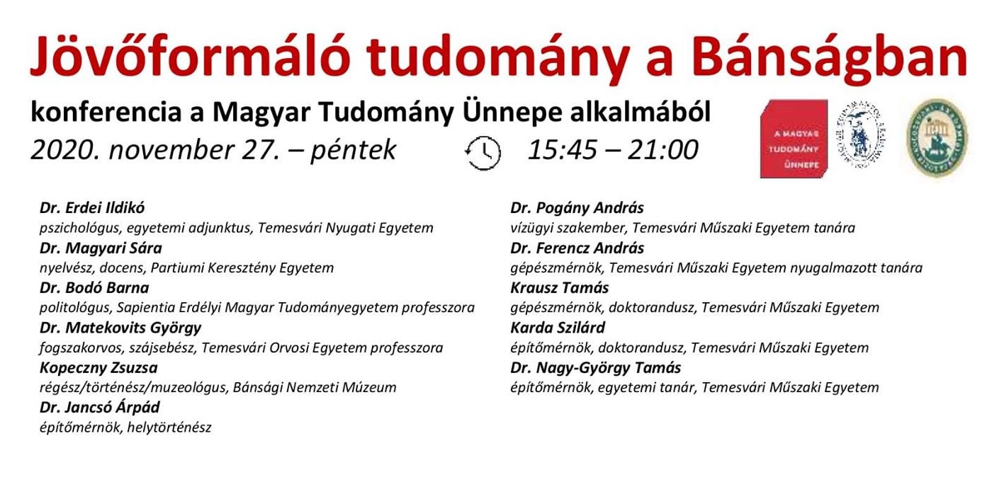 Jövőformáló tudomány a Bánságban – online konferencia a Magyar Tudomány Ünnepe alkalmából péntek délután