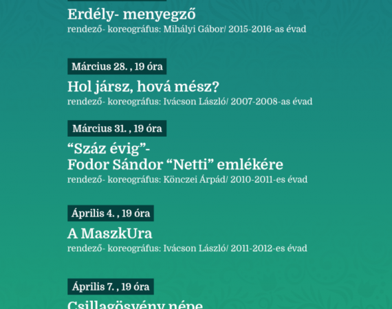 A Háromszék Táncegyüttes online előadássorozata: ERDÉLY-MENYEGZŐ (rendező-koreográfus: Mihályi Gábor/2015-2016-as évad)