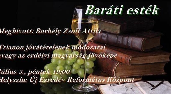 Baráti esték: Trianon jóvátételének módozatai, avagy az erdélyi magyarság jövőképe – Borbély Zsolt Attila előadása pénteken 19 órától az Új Ezredévben