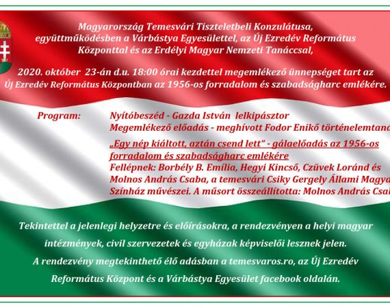 Ünnepi megemlékezés október 23-án, pénteken 18 órától az Új Ezredévben – online közvetítéssel