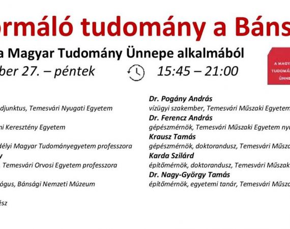 Jövőformáló tudomány a Bánságban – online konferencia a Magyar Tudomány Ünnepe alkalmából péntek délután