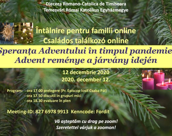 |Online| Advent reménye a járvány idején – családos találkozó a Temesvári Római Katolikus Egyházmegye szervezésében szombat délután