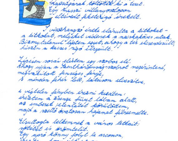 Berta Evelyn Boglárka: Egy lépés során Egy szép, tavaszi reggelen napsugarak töltötték ki a teret. Egy messzi villanyoszlopon eltévedt...