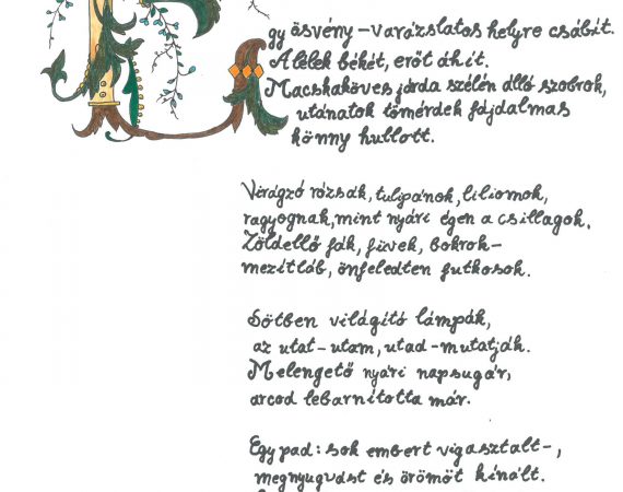 Csavar Dína: A liget padján Egy ösvény – varázslatos helyre csábít. A lélek békét, erőt áhít. Macskaköves járda szélén...