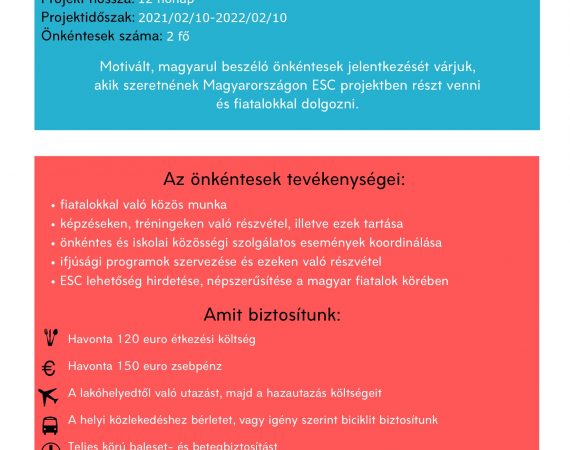 A jelentkezni kívánó fiatalok fényképes önéletrajzát és motivációs levelét az international@kozpontegyesulet.hu e-mail-címre várják. Jelentkezési határidő: 2021. január 31.