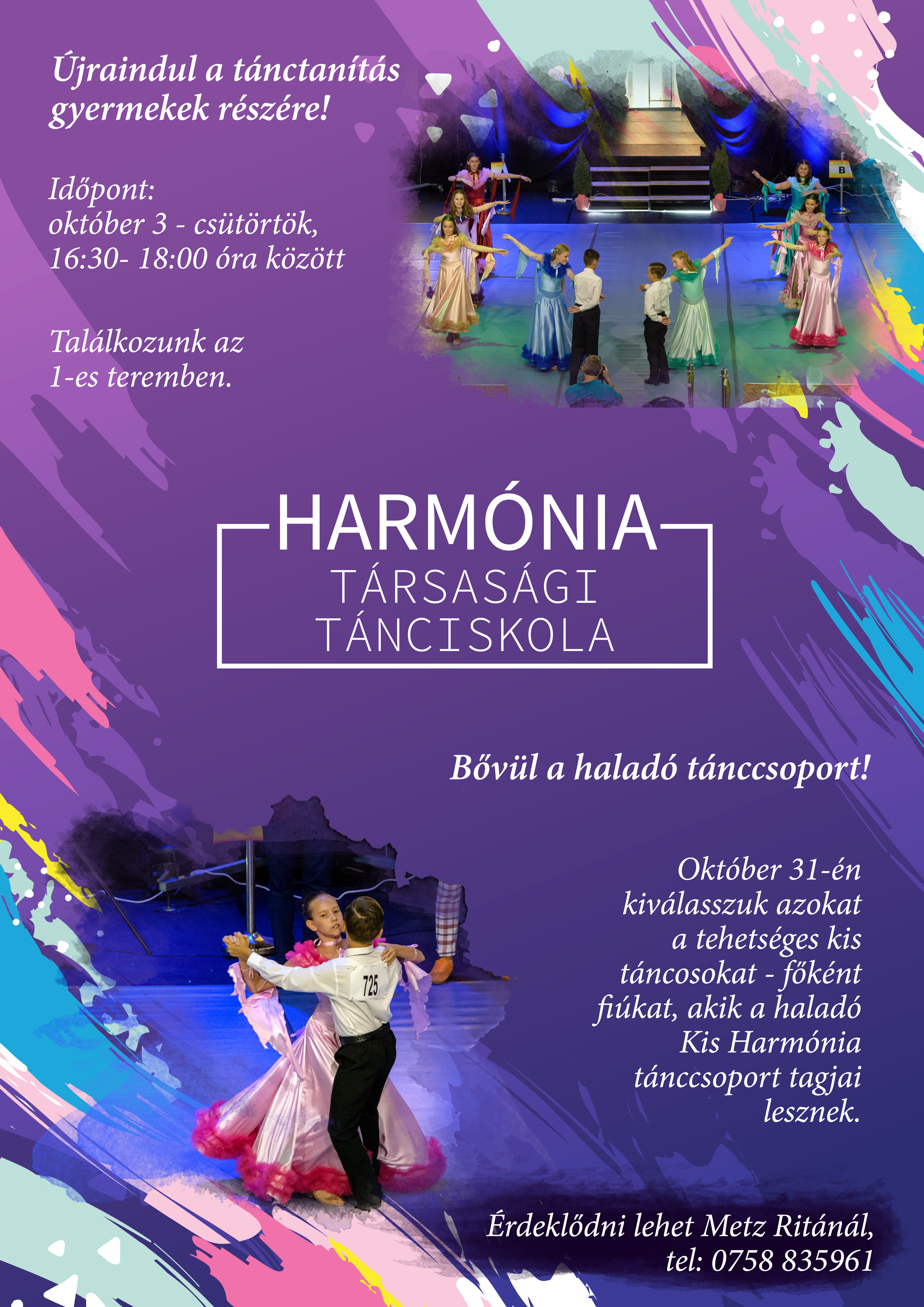 A Harmónia Társasági Tánciskola újraindítja a gyermekeknek szóló társasági tánctanfolyamát. Időpont: október 3., csütörtök 16:30-18:00 között Helyszín: Bartók Béla Elméleti...