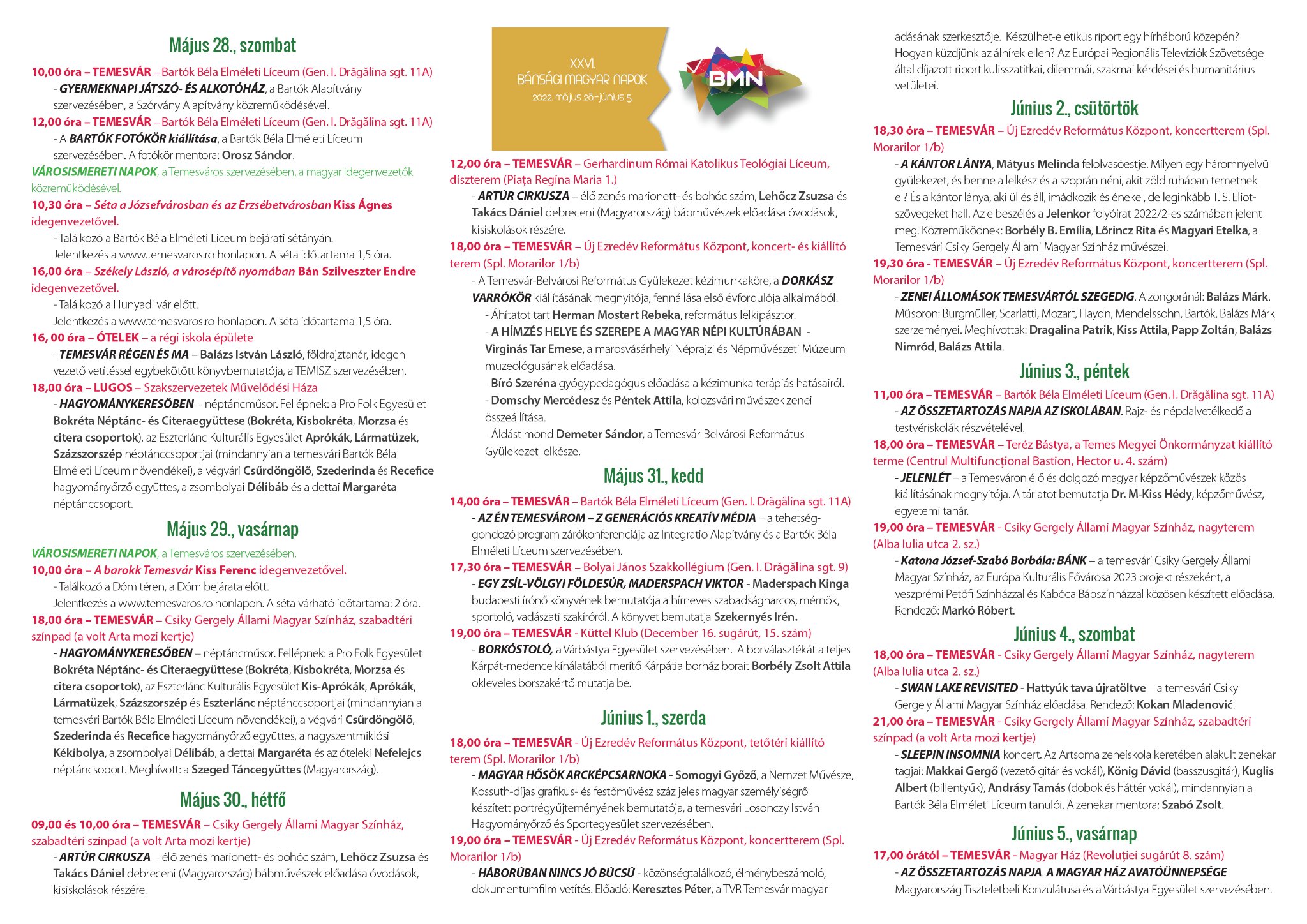 Az aktualizált programokat a Facebookon is nyomon követhetik a XXVI. Bánsági Magyar Napok oldalán.