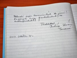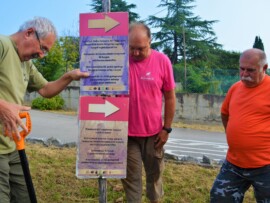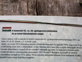 Murányi Gábor: Most útbaigazító és információs táblák újultak meg. A 2013-ban elhelyezett tábláink, amelyek éppen a szegedi, valamint a temesvári parancsnokság helyét mutatják, jelentősen kifakultak és a tartószerkezet is tönkrement. Most egy sokkal szebb és jobb tábla várja a Doberdóra látogatókat és mutatja az utat az erdőbe, az egykori történelmi helyszínekre. A tábla igazi csapatmunka volt, olaszok, szegediek és temesváriak közös ténykedése.
