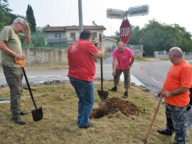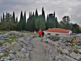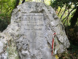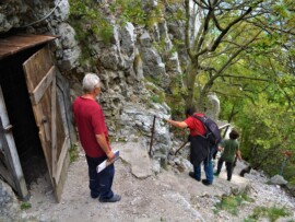 Ez volt az első találkozásunk a helyi Karszti Barlangász Egyesület és a Meritum tagjaival. Meglepett, hogy házigazdáink milyen komoly múltra tekintenek vissza csatatérkutatásban, és a világháborús emlékek őrzésében, hiszen a Doberdói csaták környékén talált emlékekből: lőszerekből, fegyverekből, használati tárgyakból, létrehoztak és működtetnek egy kiállító helyet a településen, a Nagy Háború Múzeumot.  Segítségükkel bejártuk a helyi és környékbeli magyar és olasz emlékhelyeket, a szegedi, nagyváradi és temesvári gyalogezredek jelenlétének emlékeit, voltunk a temesvári 61. császári és királyi gyalogezred parancsnokságának dolinájában is. Itt megritkítottuk növényzetet, kitakarítottuk a parancsokság és a valamikori lövészállások környékét, illetve az itt található kaverna bejáratát.
