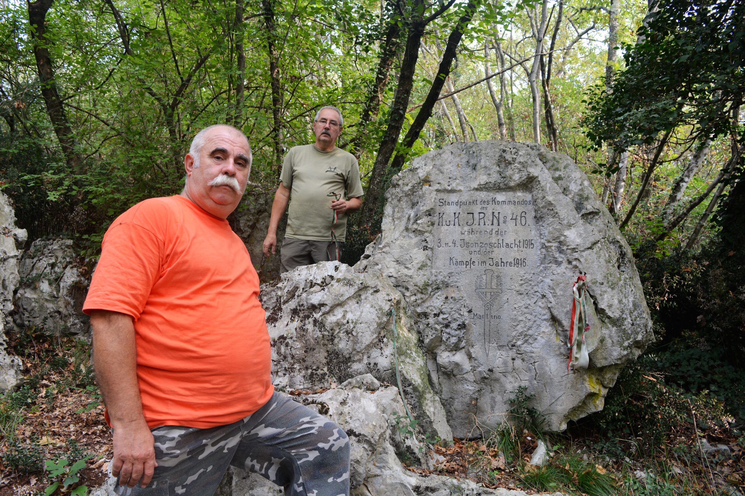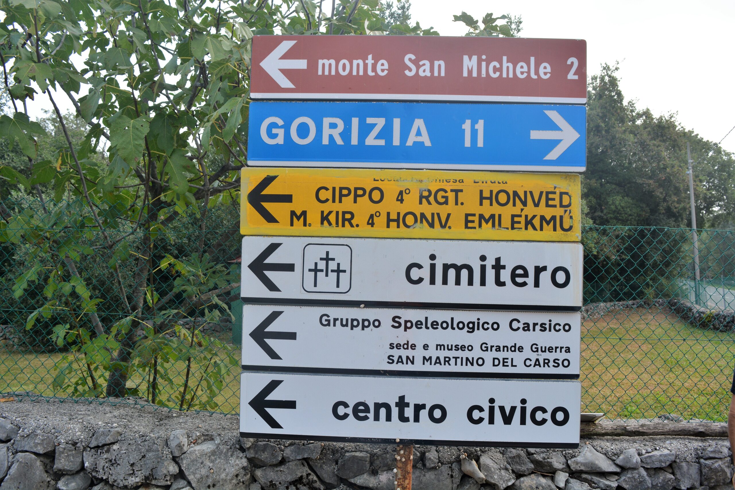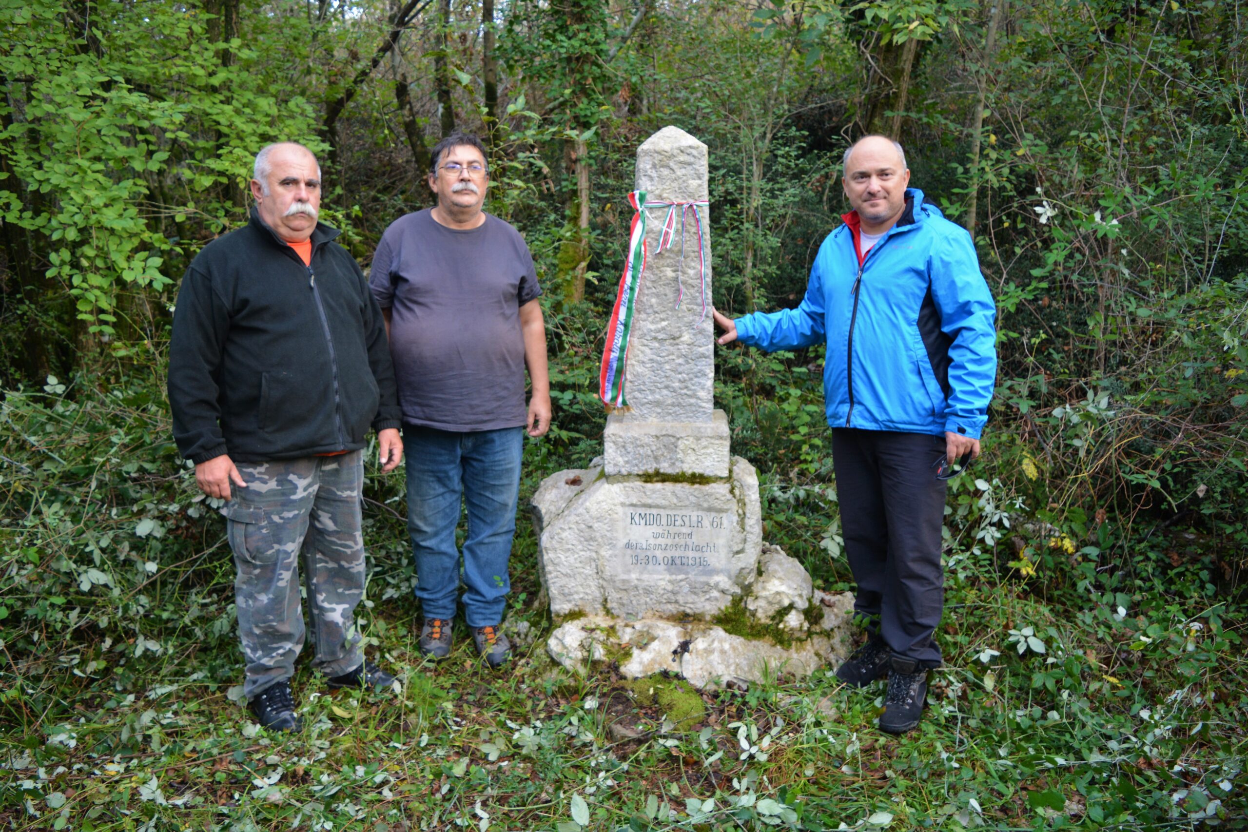 Ez volt az első találkozásunk a helyi Karszti Barlangász Egyesület és a Meritum tagjaival. Meglepett, hogy házigazdáink milyen komoly múltra tekintenek vissza csatatérkutatásban, és a világháborús emlékek őrzésében, hiszen a Doberdói csaták környékén talált emlékekből: lőszerekből, fegyverekből, használati tárgyakból, létrehoztak és működtetnek egy kiállító helyet a településen, a Nagy Háború Múzeumot.  Segítségükkel bejártuk a helyi és környékbeli magyar és olasz emlékhelyeket, a szegedi, nagyváradi és temesvári gyalogezredek jelenlétének emlékeit, voltunk a temesvári 61. császári és királyi gyalogezred parancsnokságának dolinájában is. Itt megritkítottuk növényzetet, kitakarítottuk a parancsokság és a valamikori lövészállások környékét, illetve az itt található kaverna bejáratát.