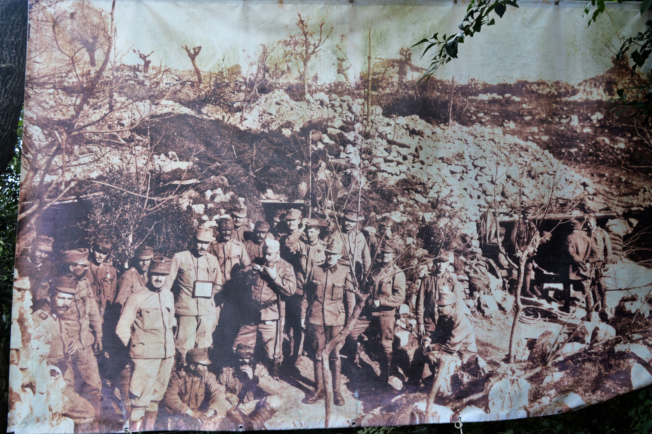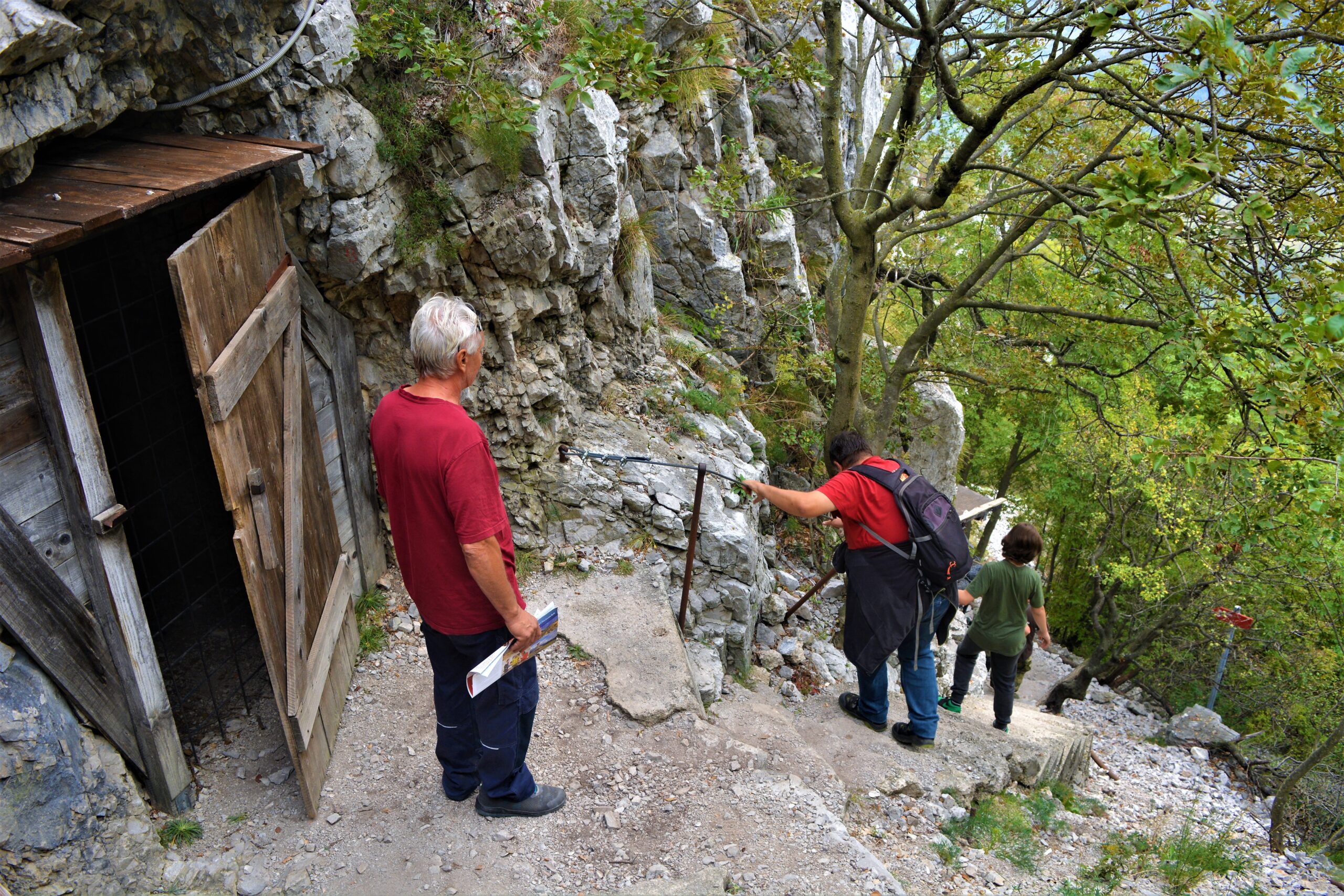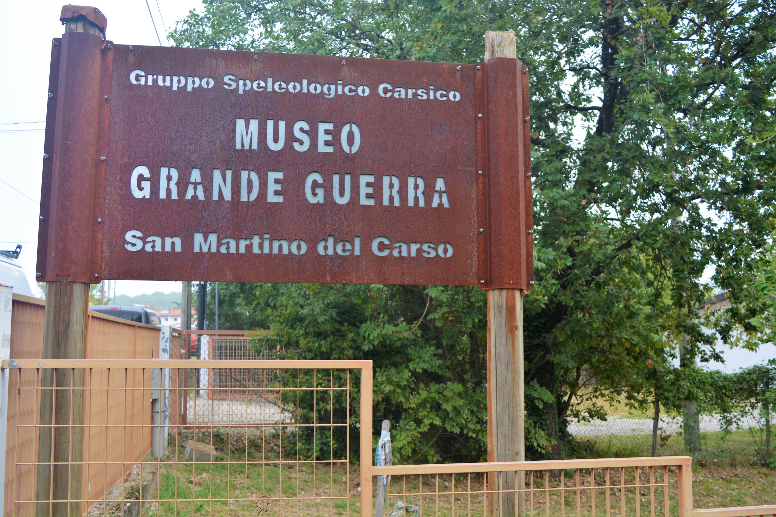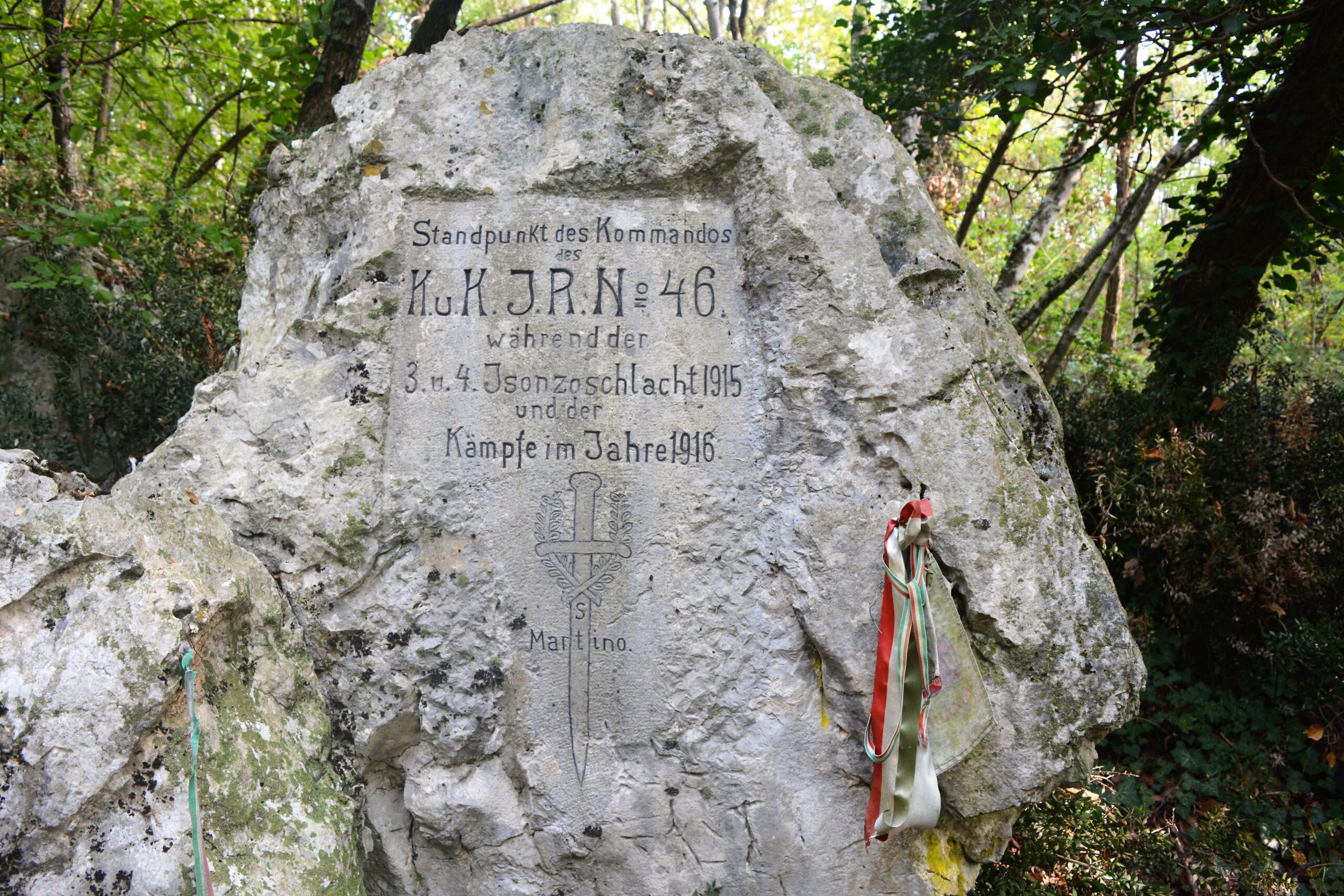 Ez volt az első találkozásunk a helyi Karszti Barlangász Egyesület és a Meritum tagjaival. Meglepett, hogy házigazdáink milyen komoly múltra tekintenek vissza csatatérkutatásban, és a világháborús emlékek őrzésében, hiszen a Doberdói csaták környékén talált emlékekből: lőszerekből, fegyverekből, használati tárgyakból, létrehoztak és működtetnek egy kiállító helyet a településen, a Nagy Háború Múzeumot.  Segítségükkel bejártuk a helyi és környékbeli magyar és olasz emlékhelyeket, a szegedi, nagyváradi és temesvári gyalogezredek jelenlétének emlékeit, voltunk a temesvári 61. császári és királyi gyalogezred parancsnokságának dolinájában is. Itt megritkítottuk növényzetet, kitakarítottuk a parancsokság és a valamikori lövészállások környékét, illetve az itt található kaverna bejáratát.