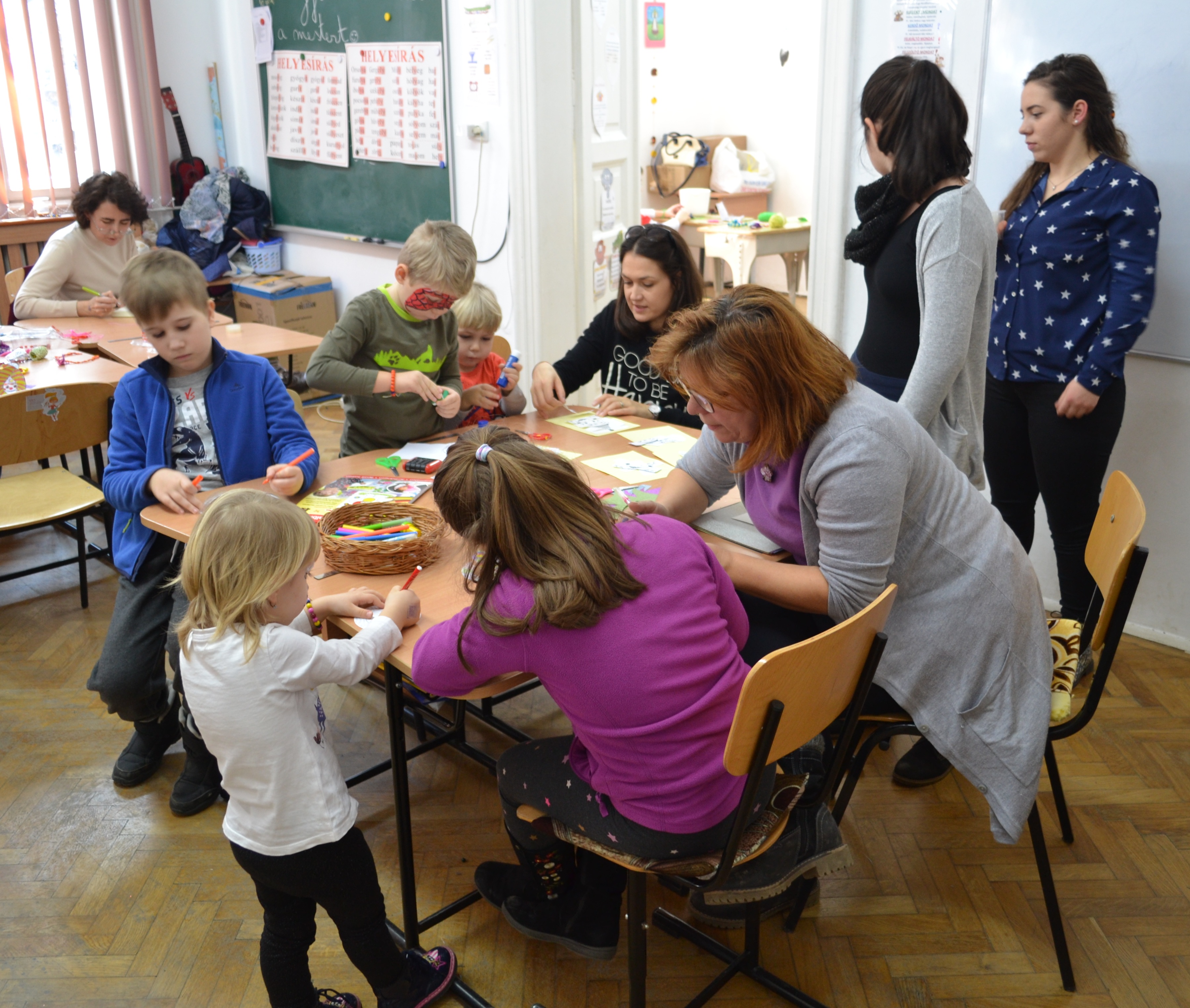 – Nincsen katedrám… Vagyis van a teremben, de inkább iratokat tárolok rajta. Ha olyan óránk van, amikor írni kell, odaülök a gyerekek közé. Vagy ha valaki aznap nem jön iskolába, elfoglalom a hiányzó helyét, hogy az ne maradjon üresen. Nem szeretem azt a régimódi, „beállok, nézzetek, mint a televíziót, hallgassatok”-stílust. Mégis csend van az osztályban, mivel a gyerekek már tudják, hogy amikor tanulunk, akkor tanulunk, máskor pedig szabadon beszélhetünk bármiről, sőt még zajonghatunk is. Kézimunkaórán csoportokba ültetem őket, és mindig megy a háttérzene. Ha véletlenül nem kapcsolom be a zenét, akkor megkérdezik: „Tanító néni, mi van veled, miért nincs zene?” Imádok közöttük lenni, úgy érzem, hogy így közelebb vagyunk egymáshoz.