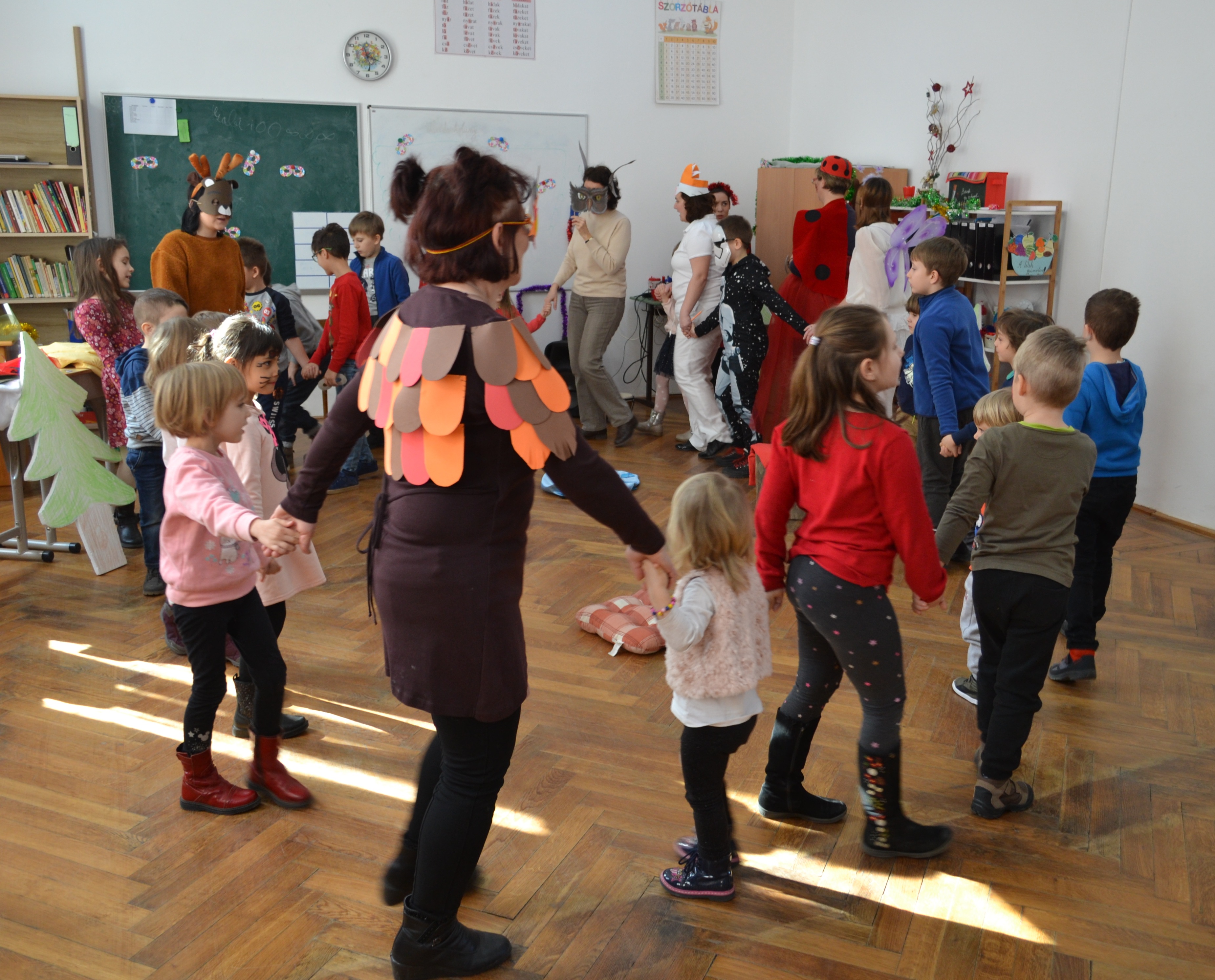 – Mielőtt elkezdtem a tanítást 2015-ben, Jakab Ilona igazgatónő azt javasolta, hogy legyen valamilyen szabadidős tevékenység is a kötelező tanórák mellett; így indítottuk el a Mackó tanodát, amelyet havonta egyszer szervezünk meg. Az első tanévben csak kézimunkával foglalkoztunk, a második évben – amikor már jött a segítség – kitaláltam, hogy legyen valamilyen mese is. Mivel kevesen voltunk, inkább bábozással foglalkoztunk: a kolléganőm olvasta a mesét, én pedig bábokkal kísértem őt. Egy évvel később, amikor már hárman lettünk, elindítottuk az élő mesét, mert kicsit unalmasnak találtam a bábozást. Úgy érzem, hogy az élő mese sokkal jobb, és nagyobb élményt ad a gyerekeknek.