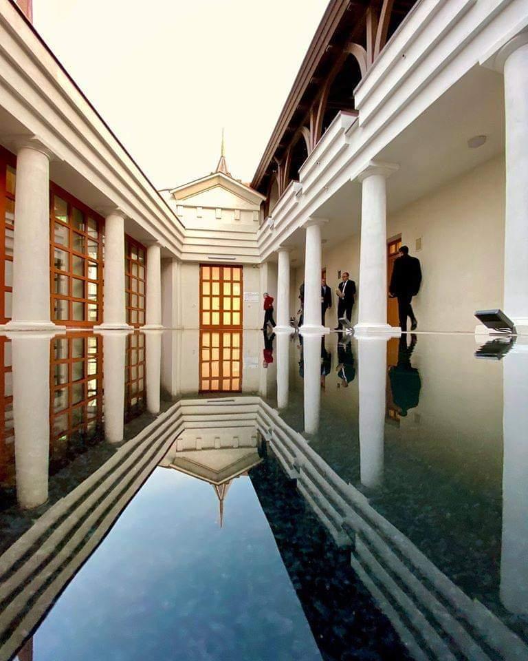 A tetőszerkezet teljesen úgy valósult meg, ahogy Makovecz Imre megálmodta. Én még azt is mondanám, hogy a tetőrétegek, a kivitelezés módja miatt és az energiahatékonyság szempontjából egészen biztos, hogy sokkal jobb, mint ahogy az 20 éve meg volt tervezve.