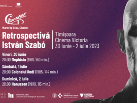 Temesvár, Ciprian Porumbescu 2.A Liszt Intézet – Magyar Kulturális Központ Bukarest 2023-ban több eseménnyel vesz részt a Temesvár – Európai Kulturális Főváros 2023 programsorozatában Temesváron. Június utolsó-, egyben július első hétvégéjén a Ceau Cinema! filmfesztivállal közösen intézetünk egy retrospektív vetítés-sorozat keretében Bukarest után Temesváron is bemutatja Szabó István kultikus trilógiáját, a Mepfisto, Redl ezredes és Hanussen című filmeket.A Magyar Filmarchívum digitalizációs programjában folyamatosan kerülnek felújításra a magyar filmörökség gyöngyszemei. Ezen restaurált filmalkotások közül rendszeresen mutatunk be a Bukaresti Magyar Filmhéten, mely vetítésekkel a Magyar Filmarchívum munkáját szeretnénk jobban kiemelni. Tavaly elindítottunk egy felújított klasszikus magyar filmek sorozatot rendezői retrospektív vetítések formájában. 2022-ben Jancsó Miklós három 4K-ban felújított filmjét vetítettük a temesvári Ceau Cinema! nemzetközi fesztivál keretében: Fényes szelek (1969), Még kér a nép (1972) és Szerelmem, Elektra (1974).Idén folytatjuk az elindított folyamatot, ezúttal Szabó István kultikus trilógiájának retrospektív vetítéseivel: Mephisto (1981), Redl ezredes (1985) és Hanussen (1988). Szabó István trilógiájában tudatos alkotói törekvésről van szó: mindhárom film hősei olyan férfiak, akik számára a szerep fontosabb a személyiségnél, akik a külső kihívásoktól megrettenve, a biztonságért és a visszaigazolásokért küzdve feladják személyiségüket, egydimenziósakká lesznek, azonosakká válnak szerepükkel. Míg a korai Szabó-filmek fiataljai, miközben helyüket keresik a világban, foggal-körömmel próbálják megőrizni személyiségüket, hűnek maradni vágyaikhoz és álmaikhoz, addig e trilógia történelmi figurái elárulják magukat a szerepért, a sikerért és a biztonságért.