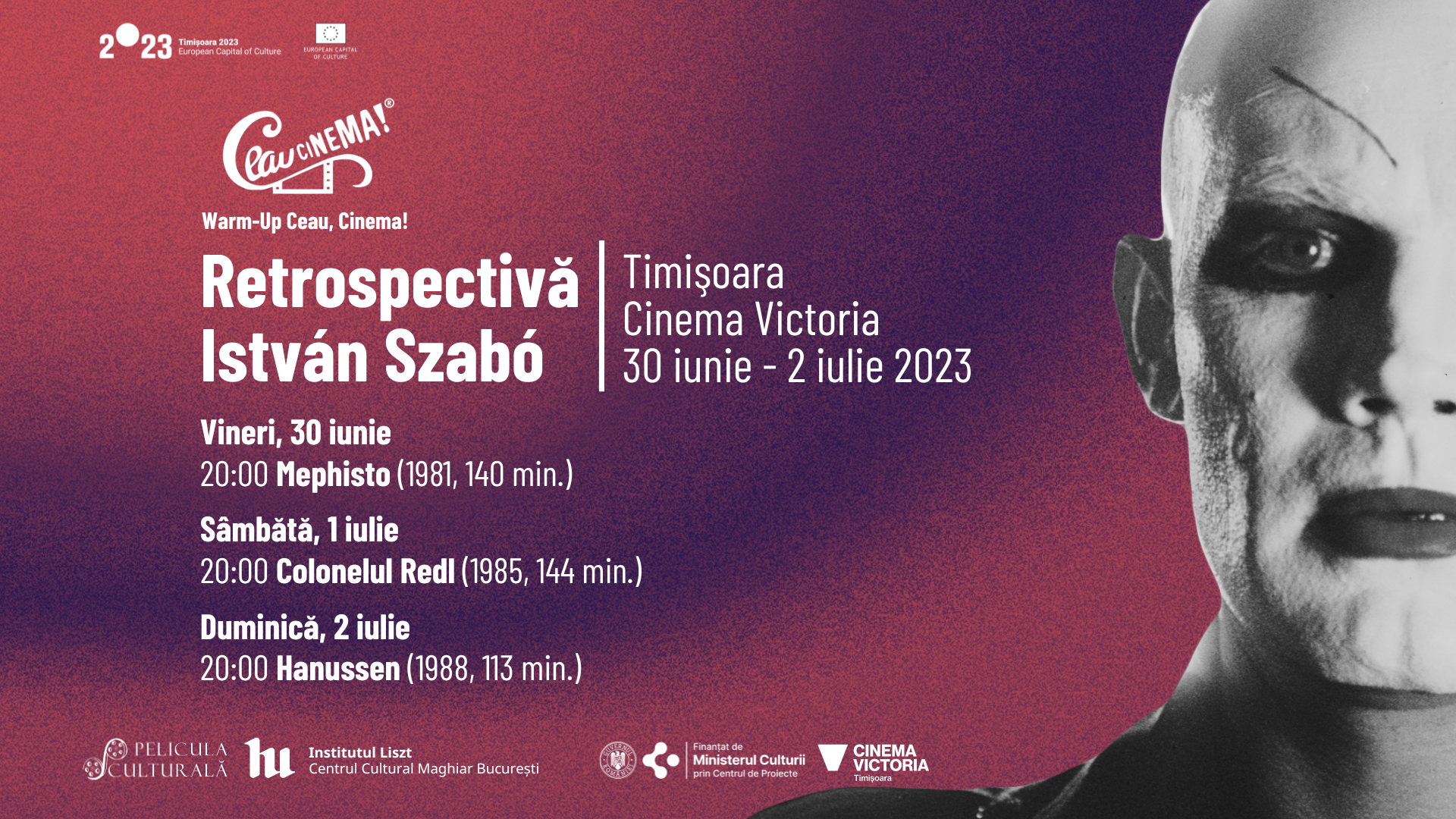 Temesvár, Ciprian Porumbescu 2.A Liszt Intézet – Magyar Kulturális Központ Bukarest 2023-ban több eseménnyel vesz részt a Temesvár – Európai Kulturális Főváros 2023 programsorozatában Temesváron. Június utolsó-, egyben július első hétvégéjén a Ceau Cinema! filmfesztivállal közösen intézetünk egy retrospektív vetítés-sorozat keretében Bukarest után Temesváron is bemutatja Szabó István kultikus trilógiáját, a Mepfisto, Redl ezredes és Hanussen című filmeket.A Magyar Filmarchívum digitalizációs programjában folyamatosan kerülnek felújításra a magyar filmörökség gyöngyszemei. Ezen restaurált filmalkotások közül rendszeresen mutatunk be a Bukaresti Magyar Filmhéten, mely vetítésekkel a Magyar Filmarchívum munkáját szeretnénk jobban kiemelni. Tavaly elindítottunk egy felújított klasszikus magyar filmek sorozatot rendezői retrospektív vetítések formájában. 2022-ben Jancsó Miklós három 4K-ban felújított filmjét vetítettük a temesvári Ceau Cinema! nemzetközi fesztivál keretében: Fényes szelek (1969), Még kér a nép (1972) és Szerelmem, Elektra (1974).Idén folytatjuk az elindított folyamatot, ezúttal Szabó István kultikus trilógiájának retrospektív vetítéseivel: Mephisto (1981), Redl ezredes (1985) és Hanussen (1988). Szabó István trilógiájában tudatos alkotói törekvésről van szó: mindhárom film hősei olyan férfiak, akik számára a szerep fontosabb a személyiségnél, akik a külső kihívásoktól megrettenve, a biztonságért és a visszaigazolásokért küzdve feladják személyiségüket, egydimenziósakká lesznek, azonosakká válnak szerepükkel. Míg a korai Szabó-filmek fiataljai, miközben helyüket keresik a világban, foggal-körömmel próbálják megőrizni személyiségüket, hűnek maradni vágyaikhoz és álmaikhoz, addig e trilógia történelmi figurái elárulják magukat a szerepért, a sikerért és a biztonságért.