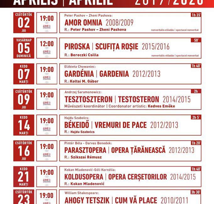 A temesvári Csiky Gergely Állami Magyar Színház áprilisi programja