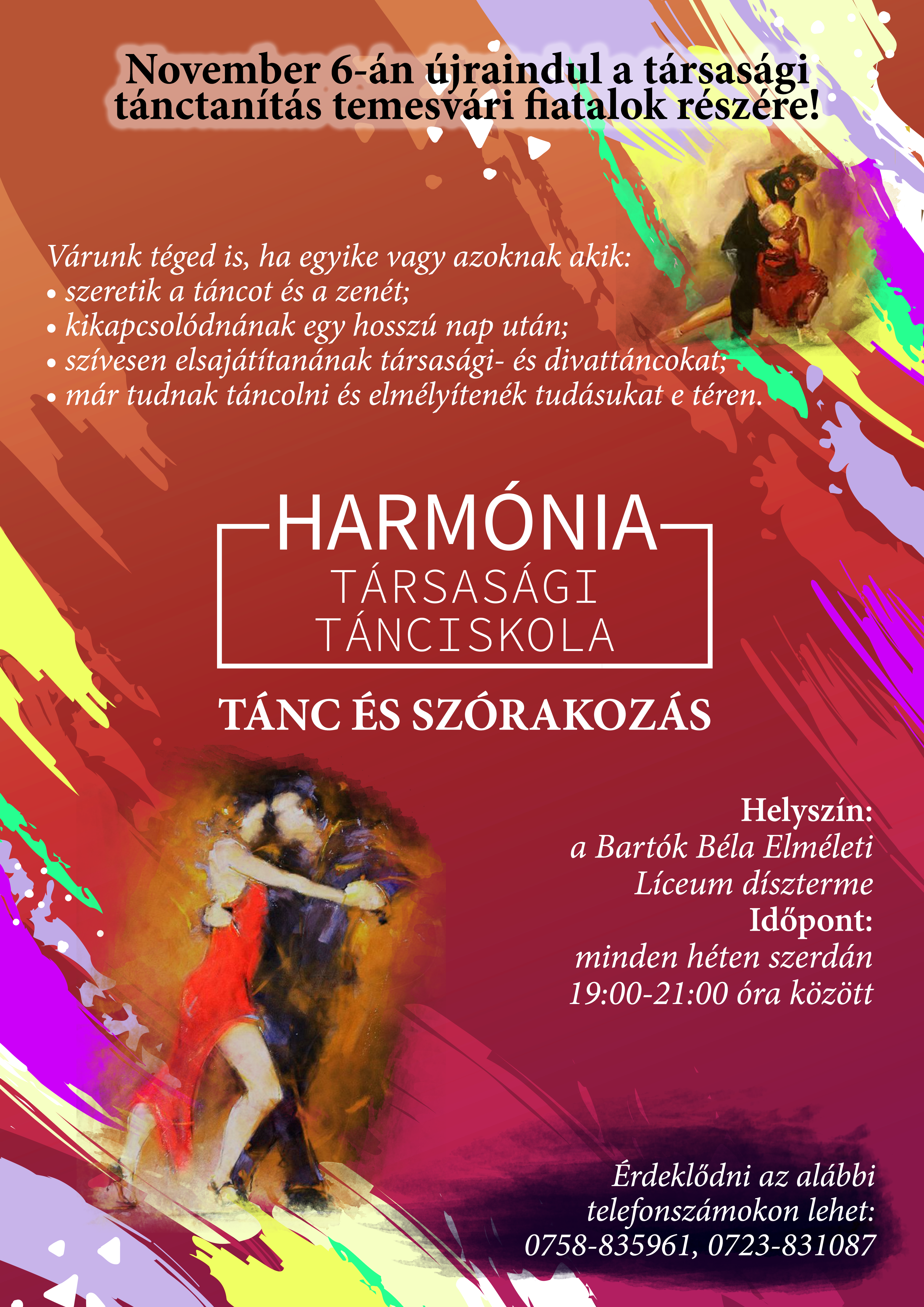 Újraindul a társasági tánctanítás temesvári fiatalok részére a Harmónia Társasági Tánciskolában