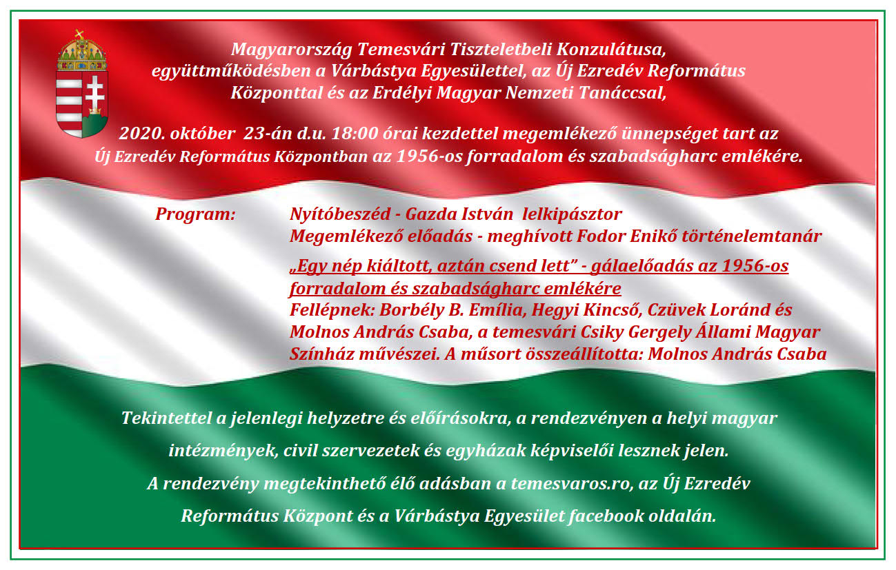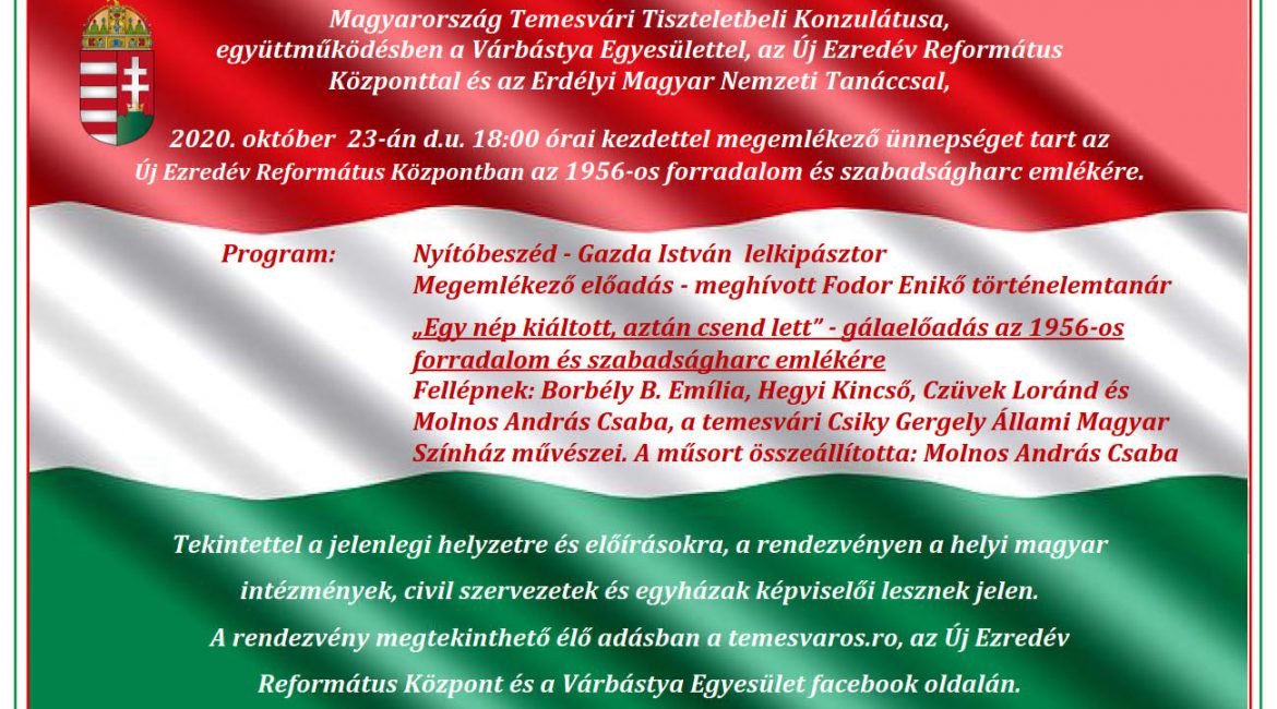Ünnepi megemlékezés október 23-án, pénteken 18 órától az Új Ezredévben – online közvetítéssel
